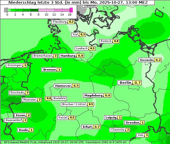 leichter Regen < 1 mm, mäßiger Regen 1 mm - 5 mm, starker Regen > 5 mm