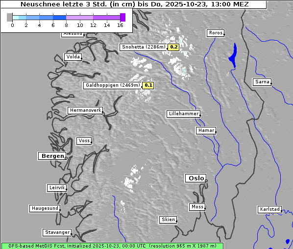 Helgenosi (1446 m) befindet sich in der MetGIS-Vorhersageregion Südnorwegen. Die Südnorwegen - Prognosekarten liefern Wettervorhersagen für die Region zwischen der norwegischen Stadt Bergen und der schwedischen Grenze. Die in Nord-Süd-Richtung verlaufende Bergkette der Skanden trennt Zonen mit kontinentalem Klima im Osten von jenen mit ozeanisch geprägter Witterung im Westen.