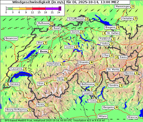 13:00 Uhr | N 3 km/h | NO 14 km/h | N 0 km/h |
