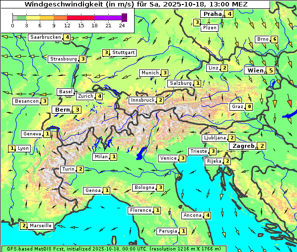 07:00 Uhr | NO 10 km/h | NO 3 km/h | SW 18 km/h |