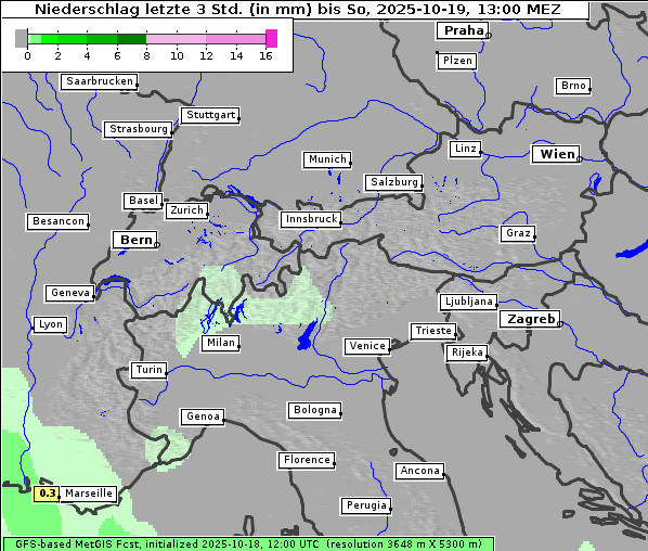 leichter Regen < 1 mm, mäßiger Regen 1 mm - 5 mm, starker Regen > 5 mm