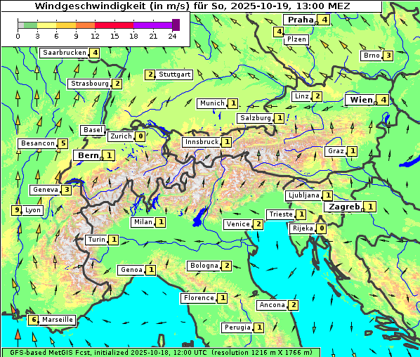 19:00 Uhr | S 3 km/h | S 7 km/h | SO 3 km/h |