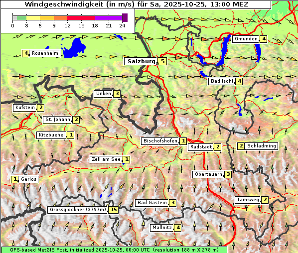 Rosenheim (446 m) befindet sich in der MetGIS-Vorhersageregion Salzburg. Die Salzburg Vorhersagekarten zeigen Wetterprognosen für das gesamte Bundesland. In den Karten werden sowohl der berühmte Salzburger Schnürlregen als auch Schneefälle in der Region Ski amadé präzise vorhergesagt.