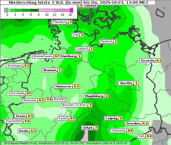 leichter Regen < 1 mm, mäßiger Regen 1 mm - 5 mm, starker Regen > 5 mm